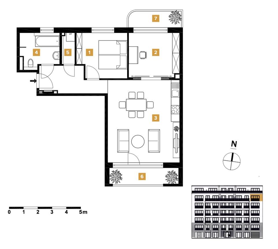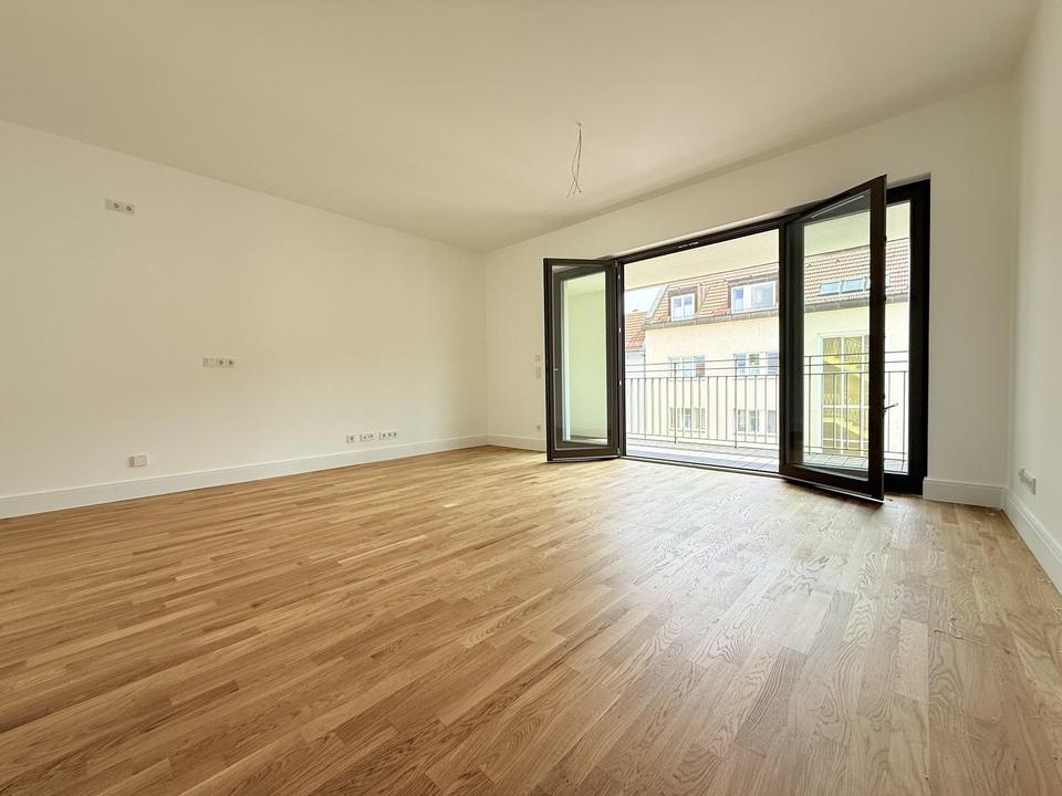 Der lichtdurchflutete Wohn- und Essbereich bildet das Zentrum dieser besonderen Wohnung. Zwei weitere Zimmer bieten Raum für individuelle Gestaltungsmöglichkeiten. Das luxuriöse Badezimmer ist mit erstklassigen Sanitäranlagen und hochwertigen Materialien ausgestattet.