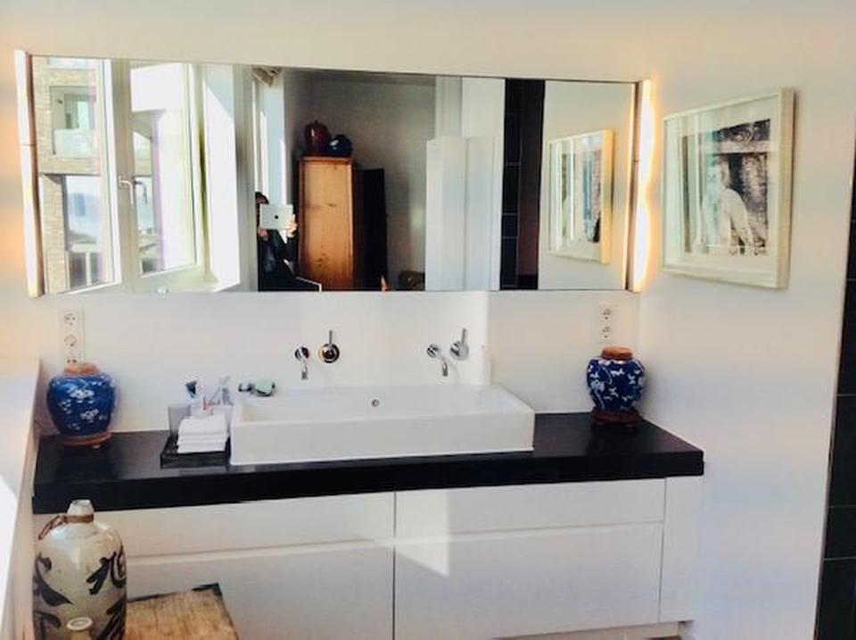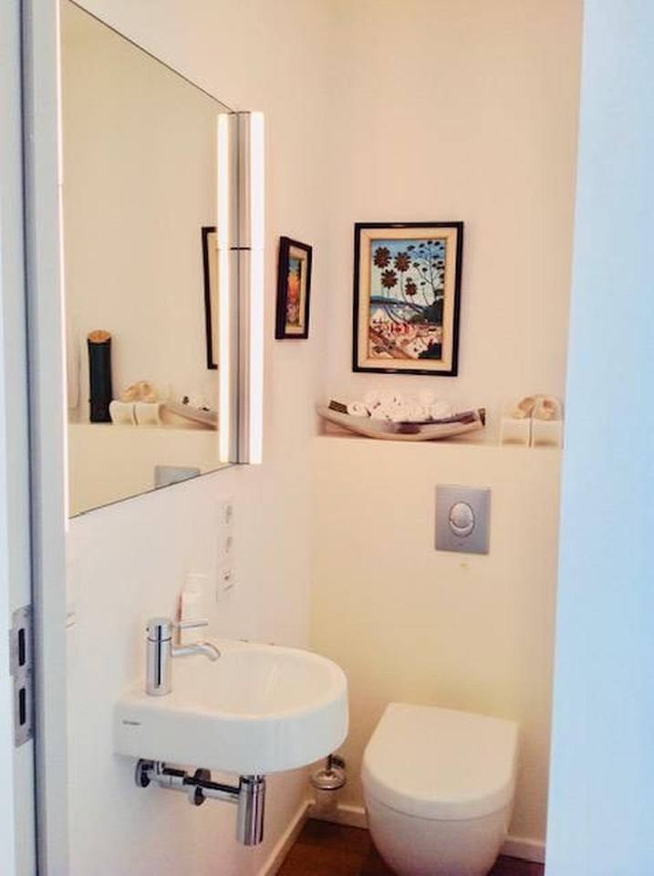 Fernwärme und Fußbodenheizung in Verbindung mit Holzparkett gewährleisten ein verlässliches und angenehmes Raumklima. Das Vollbad im oberen, sowie das Duschbad im unteren Geschoß verfügen über hochwertige Fliesen und Dornbracht sowie Duravit Markenprodukte. Die offene, helle und moderne Küche mit Geschirrspüler, Kühlschrank, Kochherd und in die Decke integrierter Abzugslösung sind ebenfalls von einem Deutschen Markenhersteller.
