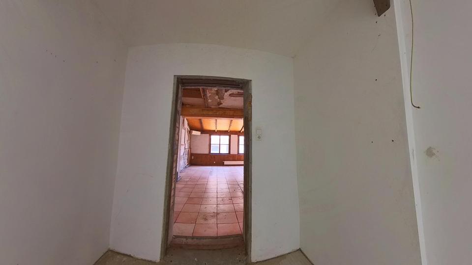 Der Grundriss ist praktisch, die Raumhöhe angenehm, jedoch sind nahezu alle Gewerke zu überarbeiten: Dach, Elektrik, Wasser, Heizsystem, Böden und Oberflächen. Ein Teil der Räume wurde bereits rückgebaut, sodass mit der Sanierung sofort begonnen werden kann.