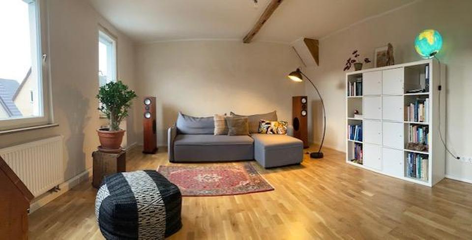 Diese gemütliche Altbau Wohnung ist neu saniert, mit einem massiven Eiche Echtholz Parkett ausgestattet, die tragenden Balken sind herausgearbeitet und lasiert.