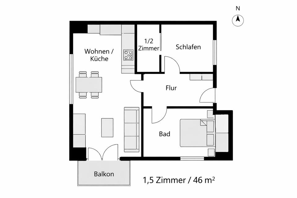 1,5-Zimmer-Wohnung (46 m²) mit Balkon – 4. OG in Potsdam