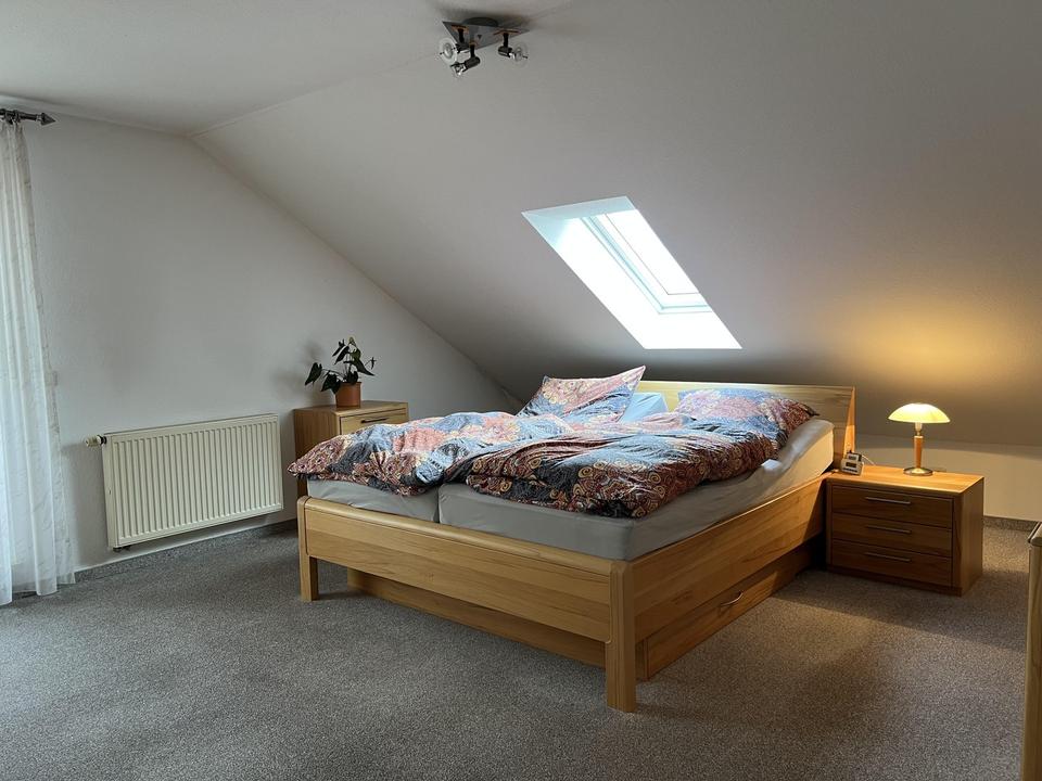 Diese helle 2-Zimmer Dachgeschosswohnung mit ca. 78 m² Wohnfläche befindet sich in Großenseebach. Die Wohnung verfügt über einen großen und voll überdachten Balkon mit Markise, der zum Entspannen einlädt, sowie eine ausgestattete Küche, die allerdings ein bisschen in die Jahre gekommen ist. Ein Keller mit ca. 20qm Nutzfläche bietet zusätzlichen Stauraum. Im Haus befindet sich darüber ein separater Waschkeller und Trockenraum. Die Wohnung wird ab dem 31.01.2026 verfügbar sein. Die Innenausstattung ist normal und teilweise renovierungsbedürftig (Teppichböden). Mit Zustimmung der anderen Eigentümer, würde ein Dachboden zum Ausbau zur Verfügung stehen.