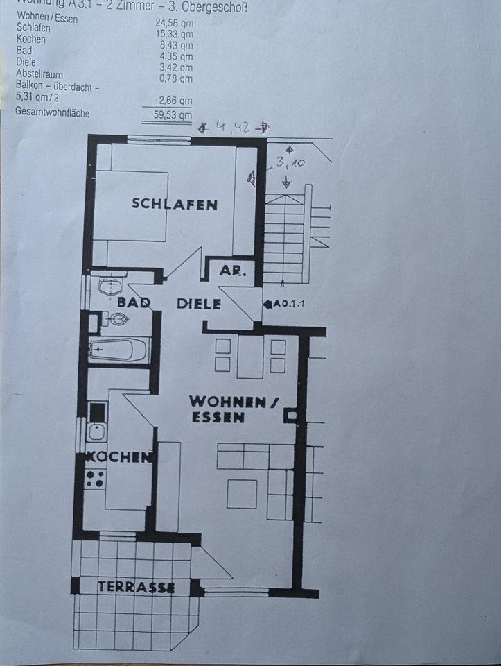 2 Zimmer – ca. 60 m² Wohnfläche – 1. OG