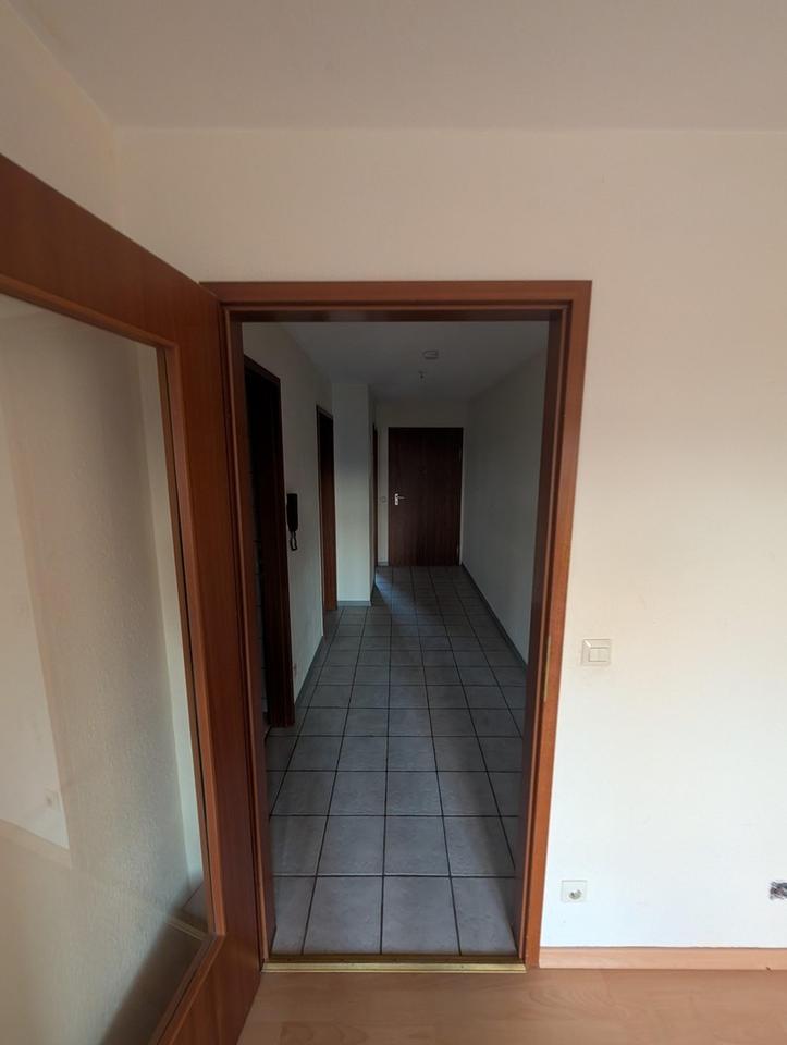 Der helle Wohnbereich mit offenen Küche (keine EBK vorhanden) und Zugang zum Balkon ist das Herzstück der Wohnung.