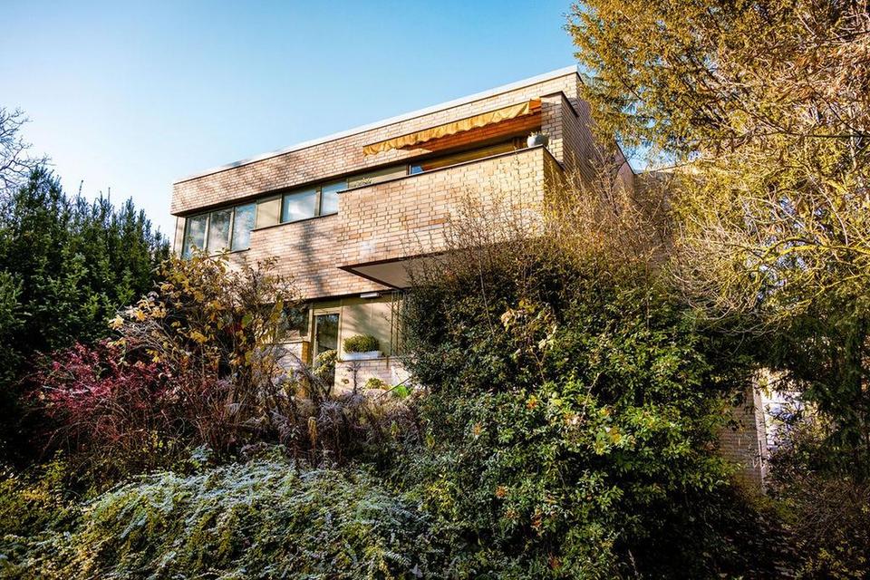 Das im Jahr 1950 errichtete Wohnhaus präsentiert sich als charakteristisches Beispiel der frühen Nachkriegsmoderne. Klare, kubische Baukörper, eine helle Backsteinfassade sowie die funktionale Formensprache des Bauhauses prägen die architektonische Identität des Gebäudes. Großzügige, horizontal ausgerichtete Fensterflächen und ein flach geneigtes Dach verleihen dem Ensemble eine zeitlose, zurückhaltend elegante Ästhetik.