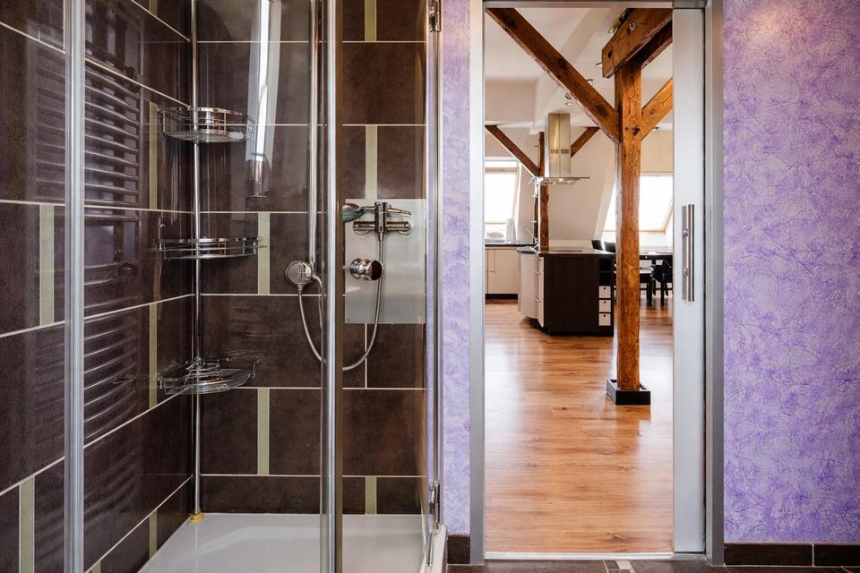 Bad: Wanne sowie Dusche mit Regenduschkopf und Fußbodenheizung.