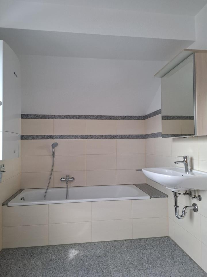 Zusätzlich steht ein großer Kellerraum (ca. 16 m²) zur Verfügung, der viel Stauraum bietet. Ein eigener PKW-Stellplatz ist ebenfalls im Mietangebot enthalten.