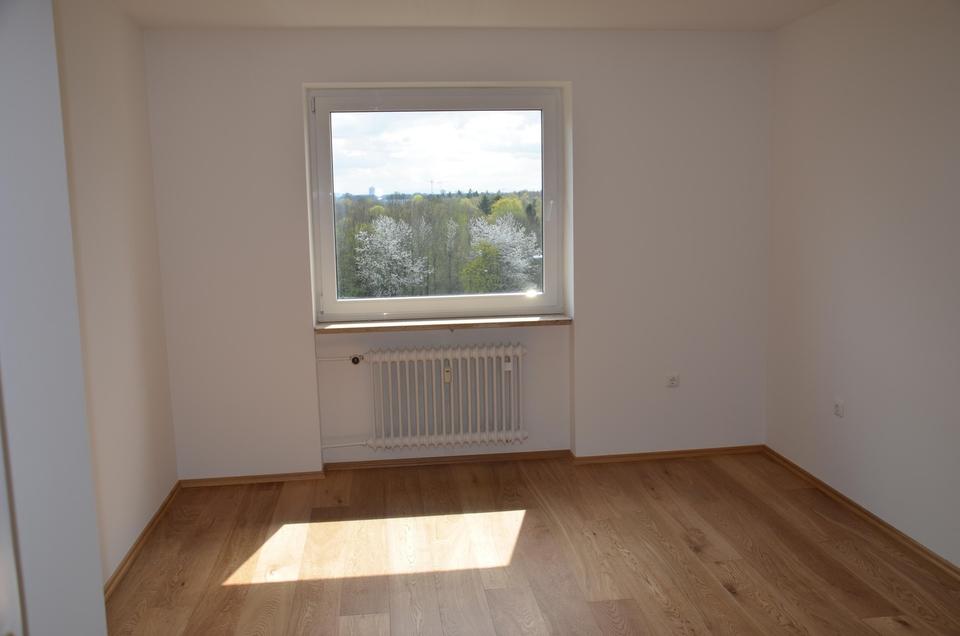 Diese helle 3-Zimmer-Wohnung mit ca. 66,5 m² Wohnfläche befindet sich im 7. Obergeschoss eines gepflegten Mehrfamilienhauses in München-Moosach. Die Wohnung verfügt über einen Süd – Balkon und ein Kellerabteil, das zusätzlichen Stauraum bietet. Ein moderner Aufzug erleichtert den Zugang zu allen Etagen. Die Wohnung ist ab dem 1.4.2026 verfügbar und wurde 2017 komplett saniert. Alle Böden in den Zimmern wurden mit Holzparket und in Küche, Bad und Flur wurden die Böden mit hochwertigen italienischen Marmorfliesen erneuert. Das Bad wurde komplett saniert: Rohre, Abflüsse, Heizkörper, sowie hochwertige Fliesen an den Wänden ausgestattet. Im Jahr 2025 wurde das gesamte Gebäude einer energetischen Sanierung unterzogen, es wurde eine Außendämmung mit einer neuer Fassade angebracht. Deshalb konnten die Heizkosten für die Wohnung gemindert werden.