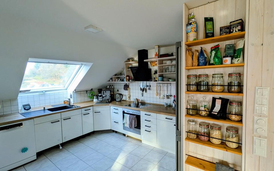 Zusätzlichen Stauraum bietet der direkt zugängliche, verkleidete und isolierte Dachspitz, der vielseitig nutzbar ist. Zur Wohnung gehören außerdem: