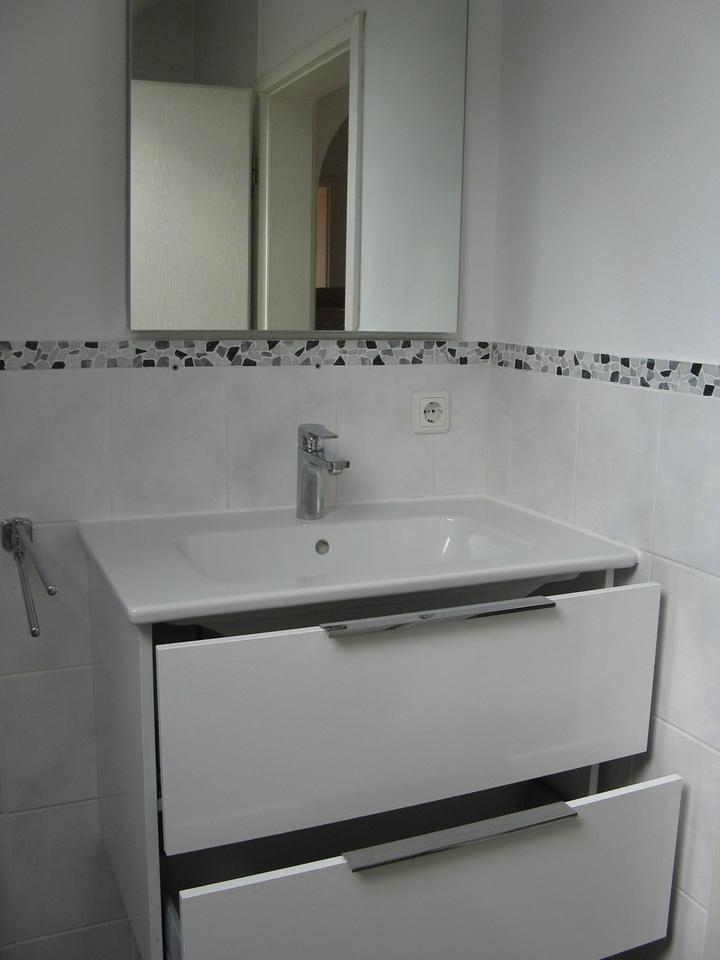 Das Badezimmer wurde von uns mit einem Waschtisch/Spiegel und einer neuen Toilette ergänzt. Die Badewanne ist halb hoch, kann so gut als Duschwanne genutzt werden.