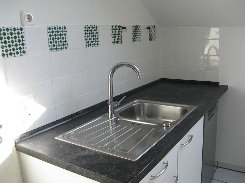 In der Küche ist noch Platz für einen Tisch und Stühle und es gibt einen kleinen Abstellraum (in der Dachschräge).