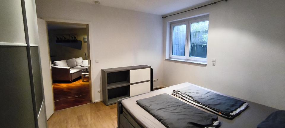 Die helle und geräumige 2-Zimmer-Wohnung befindet sich im Souterrain eines Dreiparteienhauses in Sankt Augustin – Niederpleis.
