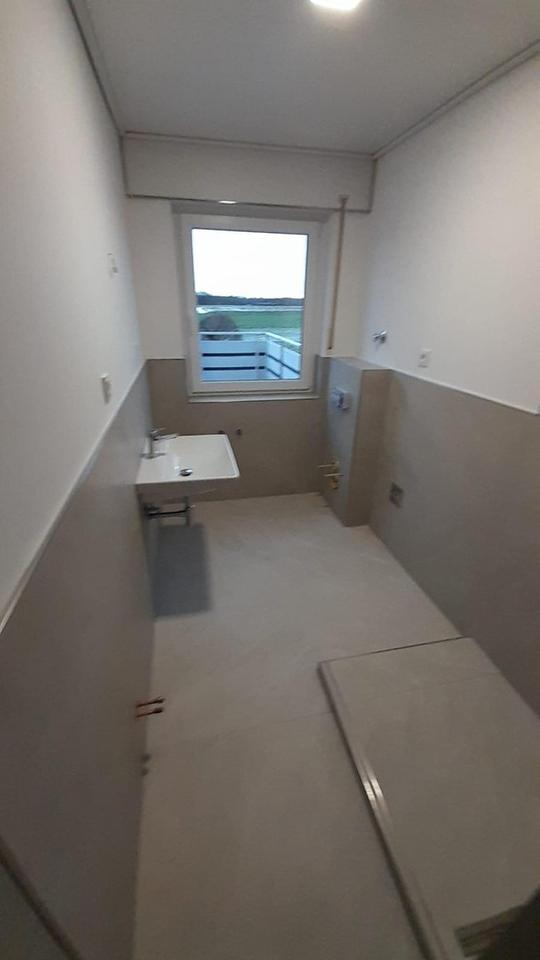 Die Wohnung wird aktuell einer umfassenden Renovierung unterzogen. Hierbei wird das Bad mit hochwertigen, warmen italienischen Fliesen und einer modernen begehbaren Dusche ausgestattet.