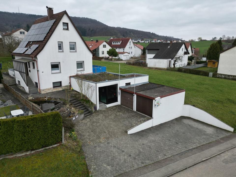 Familienfreundliches, modernisiertes EFH in Aalen-Attenhofen: 4,5 Zimmer auf ca. 125 m², Sanierung 01/2023. PV 18,8 kWp mit 10 kWh Speicher, Smart Home Fußbodenheizung, Küche 08/2023. Balkon & große Terrasse, 2 Garagen + 4 Stellplätze. Gute Bus und Bahnanbindung, ca. 5 km zur A7. Extra: ca. 130 m² Gewerbefläche (Büro/Praxis/Einlieger).