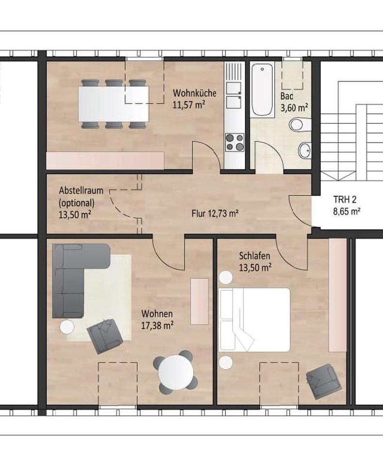 Es besteht die Möglichkeit bis zu 3 weitere Wohnungen (je 3 Zi., 76 m², Balkon) im Haus zu erwerben.