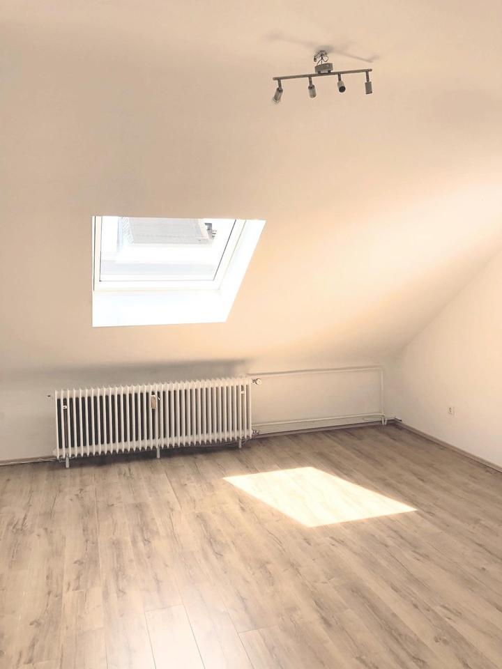 Die Wohnung befindet sich im Dachgeschoss eines Wohn- und Geschäftshauses mit 16 Einheiten. Sie ist trotz ihrer innerstädtischen Lage sehr ruhig. Die Wohnung besteht aus zwei Zimmern, einer großen Wohnküche, einem geräumigen Flur und einem Bad mit Tageslicht. Alle Zimmer haben große Dachflächenfenster und komfortable Deckenhöhen. Zu der Wohnung gehört ein 7 m² großes Kellerabteil. Abrechnungen und Reparaturen werden über eine Hausverwaltung (WEG-Verwaltung) organisiert.