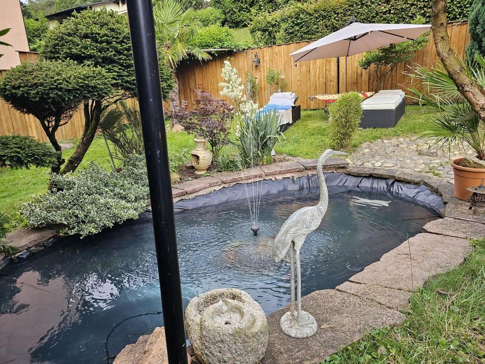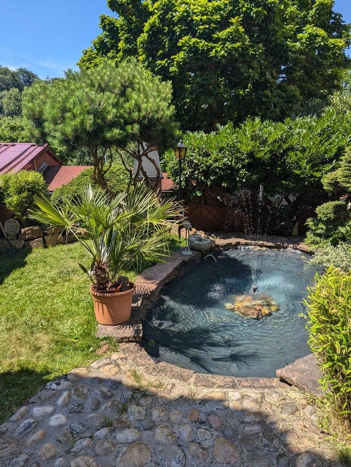 Entfliehen Sie dem Alltag in Ihrem privaten Wellnessbereich. Er ist ausgestattet mit einer Sauna, einer Dusche und einem Relax-Raum, der zum Entspannen einlädt. Der liebevoll gestaltete Garten mit seinen zwei malerischen Teichen und einem charmanten Gartenhaus, inklusive beheiztem Zwinger, ist eine Oase der Ruhe und Schönheit.
