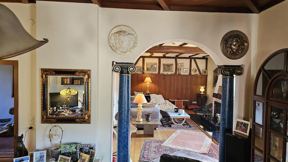 Mit einer beeindruckenden Wohnfläche von 650 qm und einem weitläufigen Grundstück von 2000 qm bietet dieses Anwesen unvergleichliche Möglichkeiten. Es beherbergt zwei separate Wohnungen, verteilt auf drei Etagen, was es ideal für Generationenwohnen, die Vermietung oder die Nutzung als Gäste- und Personalbereich macht.