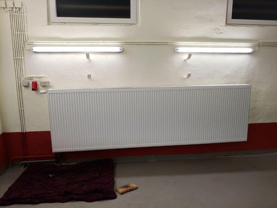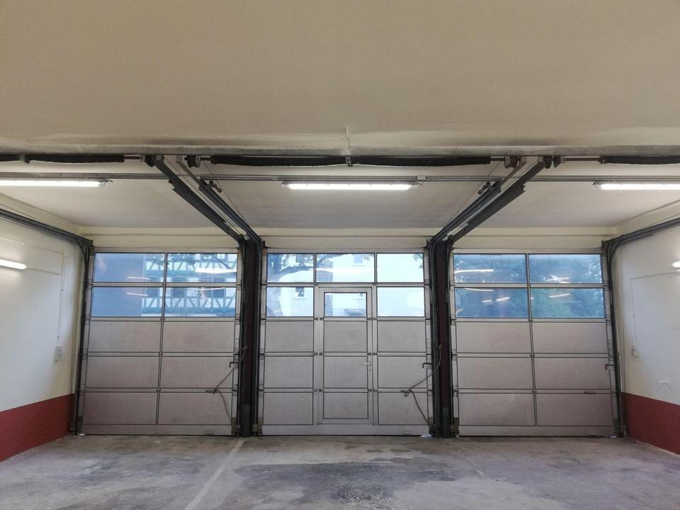 Die Halle verfügt über Strom, Wasser und Heizung. Die großen Tore lassen sich vollständig öffnen.