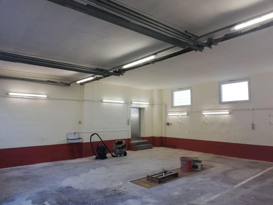 -Halle – Dach und Fenster erneuert, Boden mit Grube