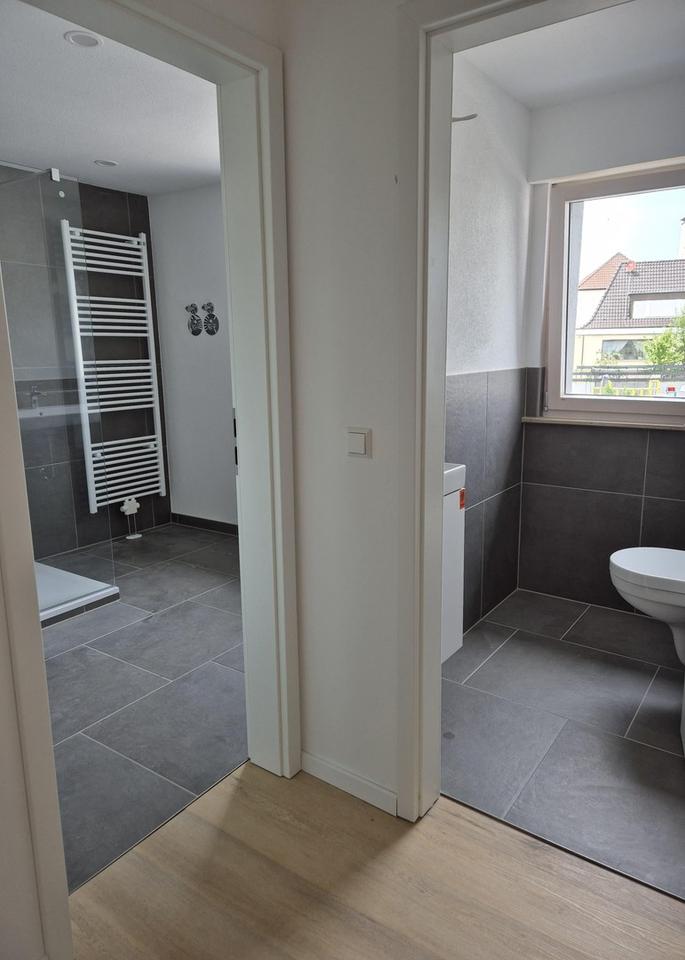 Das Badezimmer sowie das separat angeordnete WC wurden vollständig erneuert und hochwertig ausgestattet – mit modernen Fliesen, einer bodengleichen Dusche sowie einer eleganten, beleuchteten Spiegelnische. Sämtliche Wasserleitungen im gesamten Haus wurden im Zuge der Sanierung ebenfalls komplett erneuert.