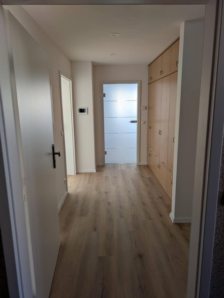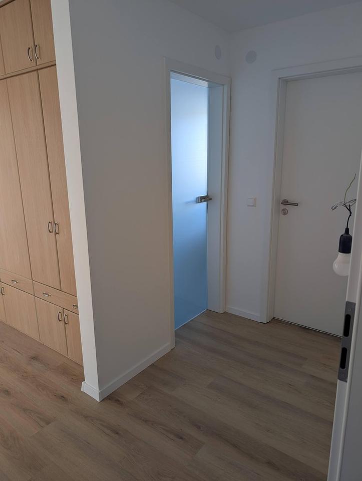 Sämtliche Türen und Zargen wurden vollständig erneuert. Küche und Wohnzimmer sind mit eleganten Glastüren ausgestattet, die Offenheit, Licht und ein modernes Wohngefühl schaffen und die Räume optisch miteinander verbinden. Der Flur, die Küche und das Badezimmer sind bereits mit großen LED-Spots ausgestattet, um eine helle, angenehme Beleuchtung zu bieten.