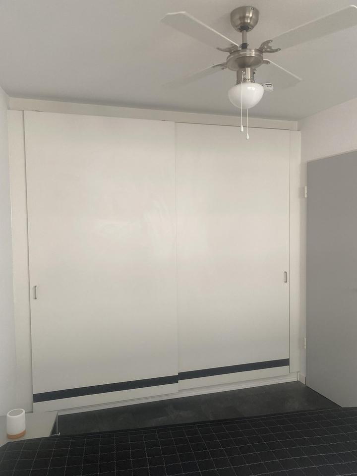 *Schlafzimmer: Das ruhige Schlafzimmer verfügt über einen großzügigen Einbauschrank und ein hochwertiges weißes Bett der Marke Ruf und eine Federkernmatratze der renovierten Marke RUF (1,60m x 2,00m) ausgestattet mit Verdunkelungsplissees für einen erholsamen Schlaf.