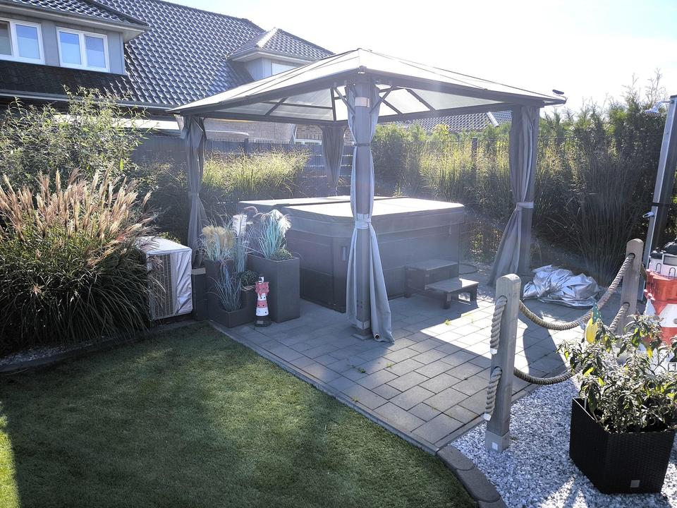 – Regenfeste Überdachung mit Ambientebeleuchtung