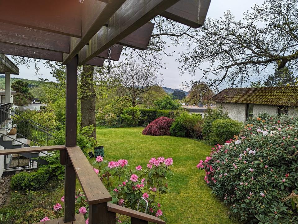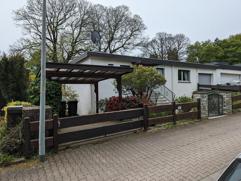 Dieses schöne Einfamilienhaus verfügt über 164m² Wohnfläche verteilt über zwei Ebenen. Die Grundrisse sind modern, die Räume groß und hell. Außerdem besticht das große, gepflegte Grundstück mit einem wunderschönen Garten, der über zwei Ausgänge, einem überdachten Balkon sowie einer Pergola, zu erreichen ist. Von hier genießen sie einen herrlichen Ausblick. Über die Pergola hat man auch Zugang zu der am Haus angebauten Garage. An der linken Seite des Hauses befindet sich zudem ein separater Zugang zur Einliegerwohnung, ein überdachter Stellplatz sowie ein Geräteschuppen. Die Lage direkt am Waldrand garantiert Ruhe und Erholung.