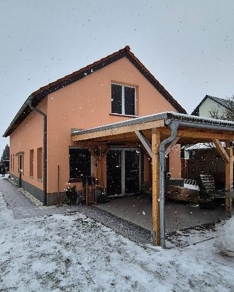 Das gemütliche, gut isolierte Einfamilienhaus ist durchgehend gefliest und verfügt in beiden Etagen über eine Fußbodenheizung. Vom hellen geräumigen Flur aus gelangen Sie in das großzügige Wohnzimmer mit Kaminofen und offener Einbauküche. An der anderen Seite gibt es ein großes Arbeitszimmer bzw. ein weiteres Schlafzimmer. Das Erdgeschoss verfügt auch über ein Bad und einen Hauswirtschaftsraum.