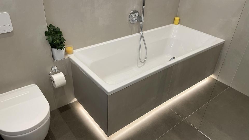 •Abgehängte Decke im Bad inkl. dimmbare LED-Spots und indirektem Lichtband