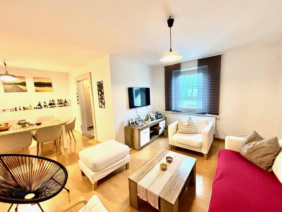 Die Wohnung selbst ist sehr gut geschnitten. Sie hat drei Zimmer, von denen zwei derzeit als Schlafzimmer genutzt werden. Das dritte Zimmer ist der Wohnbereich mit Essecke und direkt anschließender Küche. Hier wird gelebt, gegessen und viel Zeit miteinander verbracht.