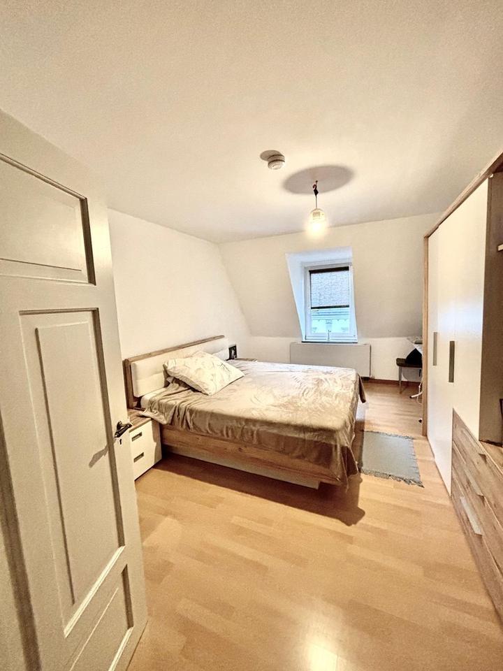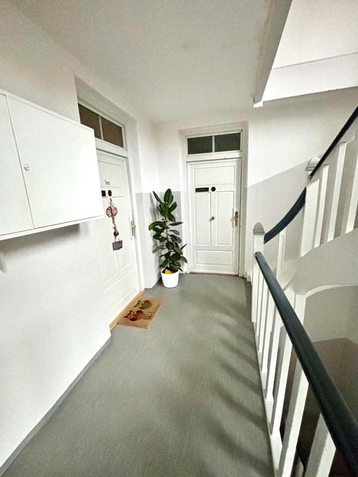 Die Wohnung befindet sich im 2. OG eines wirklich schönen, klassischen Altbaus im Nikolaviertel. Das bedeutet, Sie sind auch zu Fuß schnell in der Innenstadt und, wenn Sie in die andere Richtung gehen, noch schneller am Bahnhof. Alle Geschäfte, Ärzte, Schulen und Kindergarten sind gut erreichen. Die Nachbarschaft besteht zum Teil aus ähnlichen Häusern – klassische Altbauten – und zum Teil aus Neubauten wie z.B. hinter dem Arbeitsamt. Es gibt wenig Verkehr, daher wohnt man hier ruhig und mit Anwohnerausweis bekommt man auch immer einen Parkplatz.