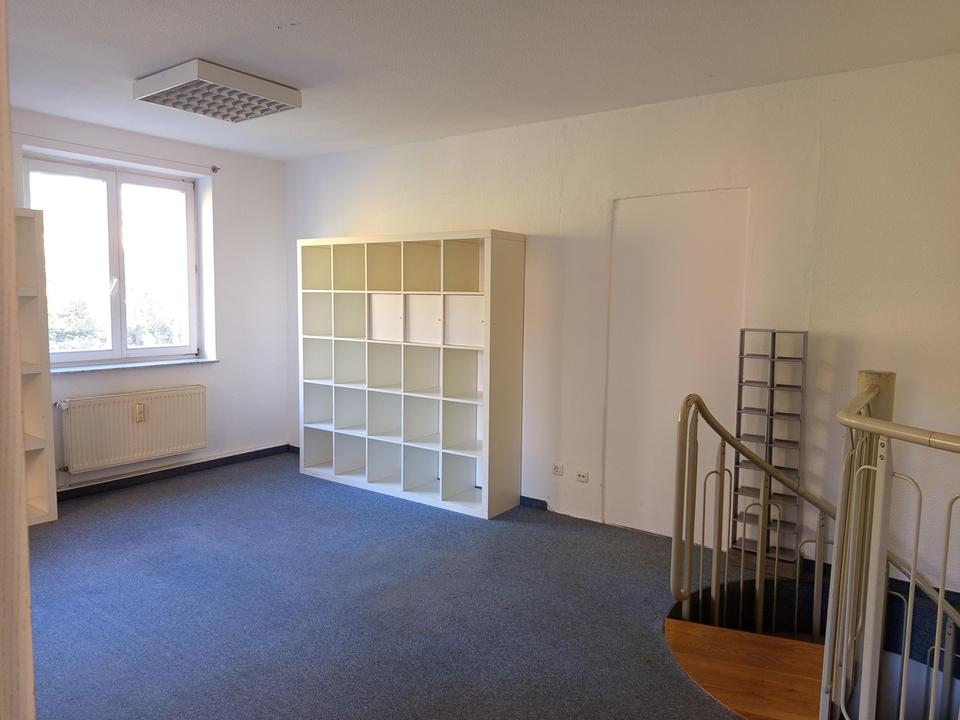 Kleine doppelgeschossige Gewerbeeinheit im Nebengebäude eines Wohngrundstücks in Schillerplatznähe. Separater Zugang im Erdgeschoss mit Bürofläche und Teeküche, Wendeltreppe ins Souterrain mit weiterer Nutzfläche und einem Duschbad. Derzeitige Ausstattung mit Teppichboden und Rauhfasertapete.