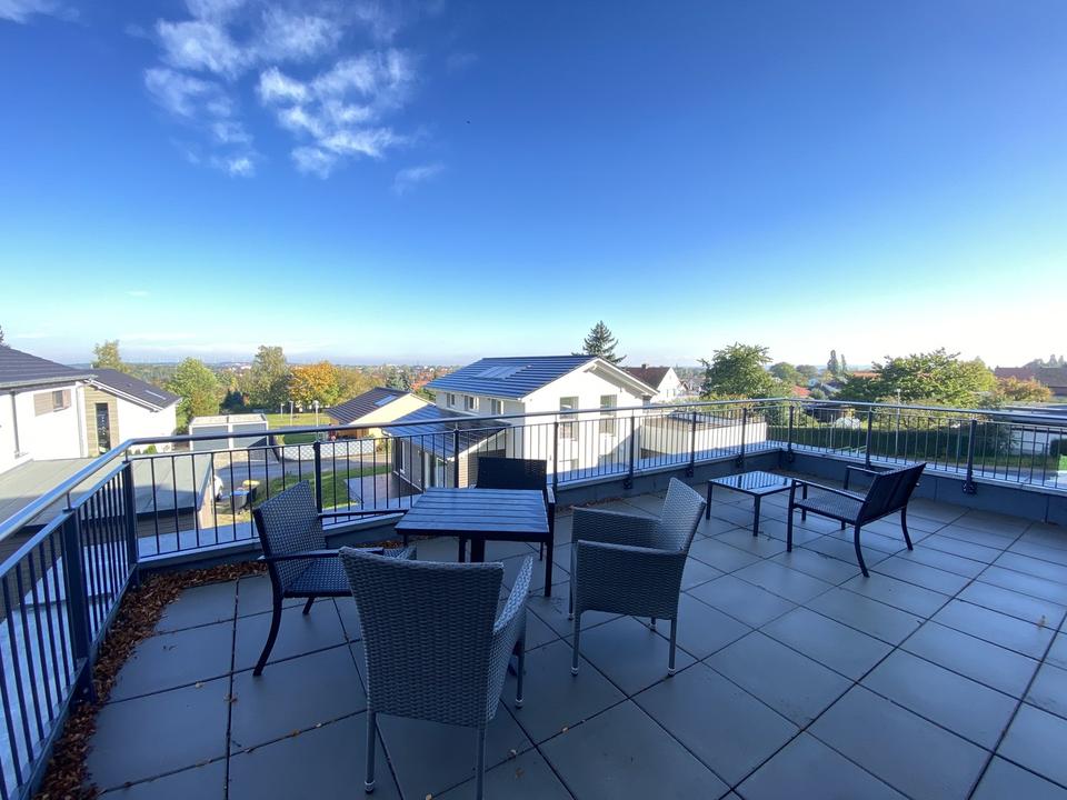 Objektbeschreibung: Objektbeschreibung Genießen Sie den Ausblick über die Stadt von einer der größten Dachterrassen in Görlitz! Mit dem Aufzug gelangen Sie vom Parkplatz direkt bis vor die Wohnungstür. Eine Einbauküche sowie neue Möbel sind vorhan…
