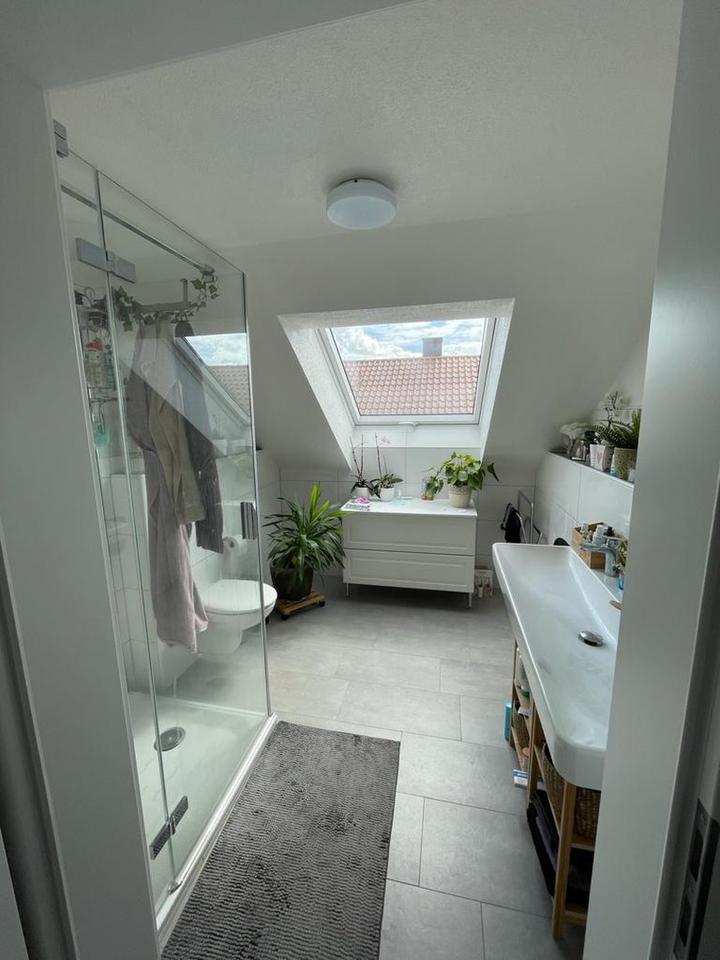 Sie befindet sich im Dachgeschoss eines 1964 erbauten Hauses, welches 2019 komplett entkernt und alle Gewerke, vom Dach bis zur Heizung, Fenster, Elektrik, Sanitär komplett saniert wurde.