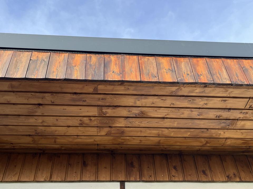 Das Dach wurde 2021 von einem Fachbetrieb neu eingedeckt und gedämmt. Rechnung über ca. 11.000€ vorhanden. Fassade und Holz wurden regelmäßig mit hochwertiger Beschichtung gepflegt. Durch das hohe Fundament ist der Bungalow absolut trocken.