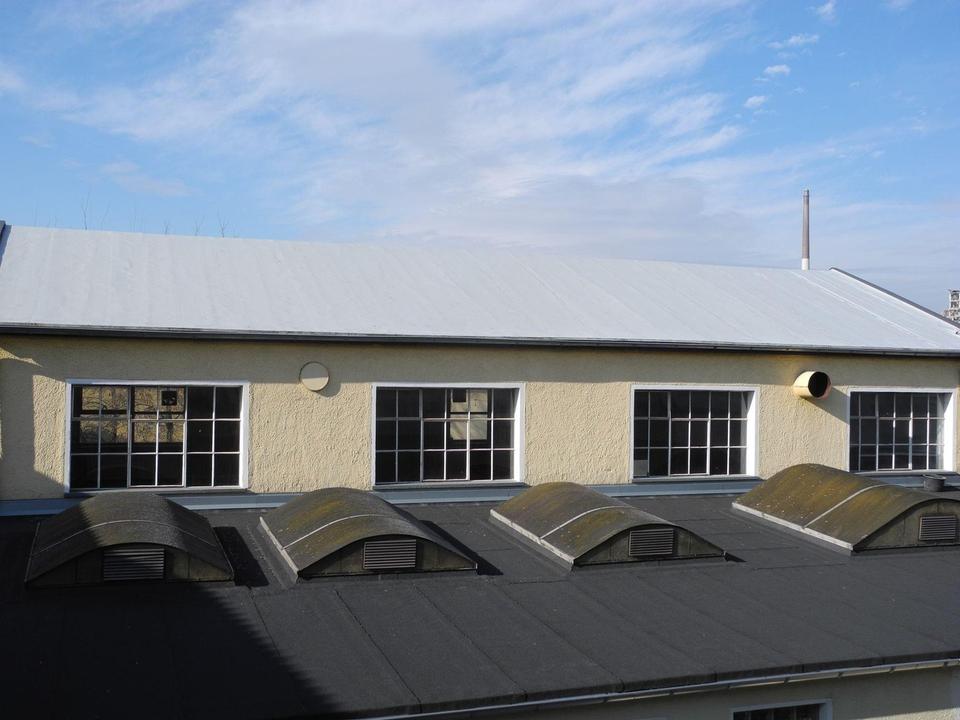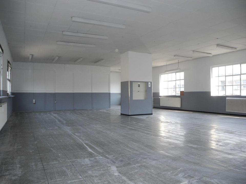 Der Raum auf der 1. Etage ist gut belichtet und wurde früher als Werkstatt und zuletzt als Atelier genutzt. Die teilweise noch alten Industriefenster und die offene Fläche geben dem Raum einen besonderen Charakter und erlauben eine flexible Nutzung.
