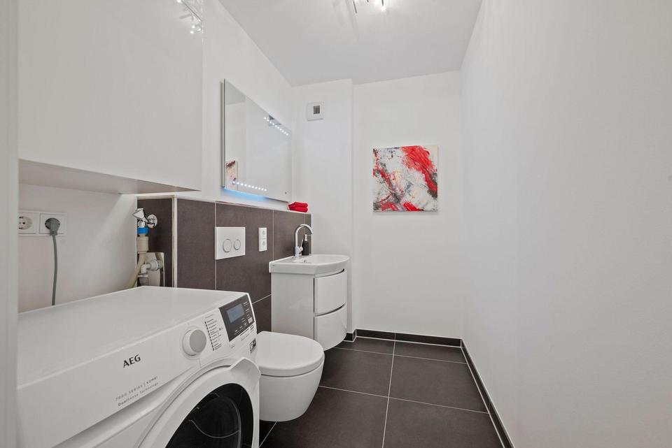 Ein großes separates Gäste-WC mit Anschlussmöglichkeiten für Waschmaschine und Trockner komplettieren die drei attraktiven Zimmer zu einem modern ausgestatteten Apartment zum Wohlfühlen.
