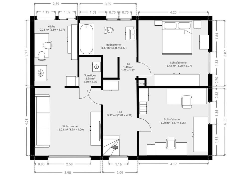 • Eigener Wohnungseingang (Hauscharakter)