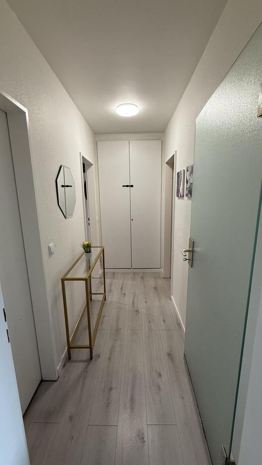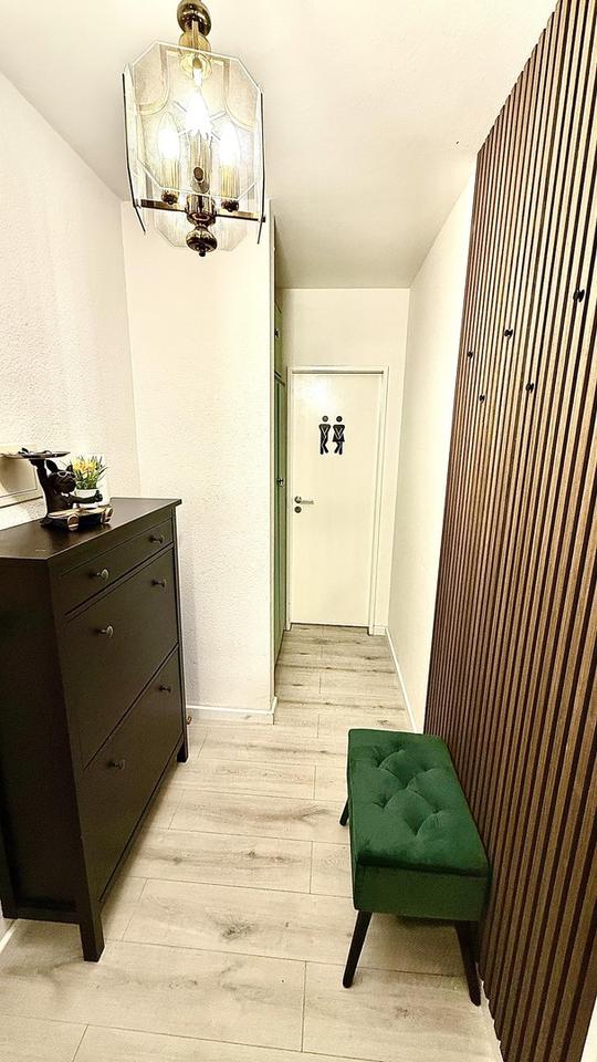 Diese luxuriös ausgestattete und voll möblierte 3,5-Zimmer-Wohnung mit ca. 110 m² Wohnfläche befindet sich im 3. Obergeschoss eines modernen Mehrfamilienhauses in Köln-Weiden. Die Wohnung verfügt über zwei Schlafzimmer, zwei Badezimmer, eine Küche und ein gemütliches Wohnzimmer mit Kamin. Die Einbauküche ist bereits installiert und komplett ausgestattet. Zu den weiteren Annehmlichkeiten gehören zwei Balkone und ein Essbereich. Die Wohnung ist barrierefrei und mit einem Aufzug ausgestattet, der alle Etagen bequem erreichbar macht.