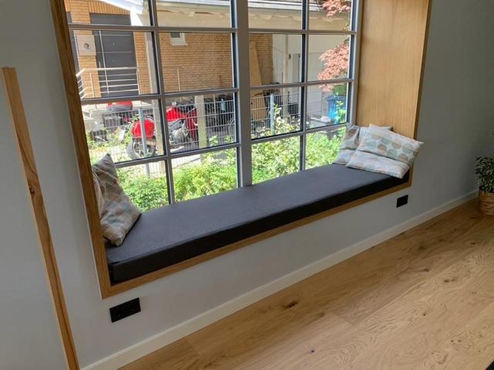 Das Herzstück des Hauses bildet der offene Wohn- und Essbereich mit hochwertiger Designküche. Ein stilvoll integrierter Kamin sowie ein gemütliches Sitzfenster gliedern den Raum optisch und schaffen eine besondere Wohnatmosphäre mit viel Licht und Behaglichkeit.