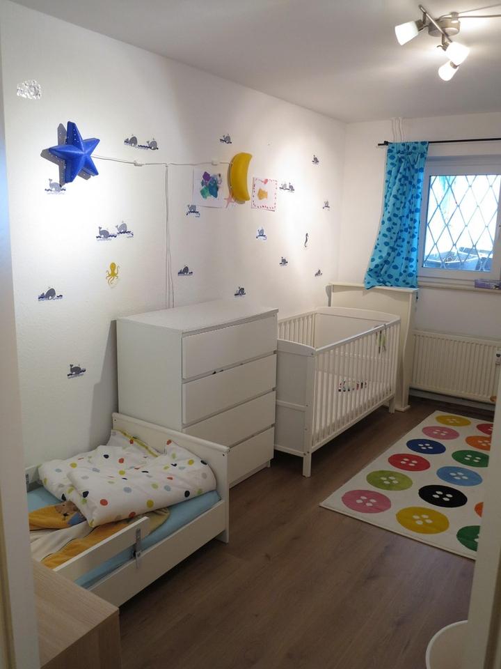 In der gesamten Wohnung mit Ausnahme der Küche und Badezimmer ist hochwertiger Laminatboden verlegt.
