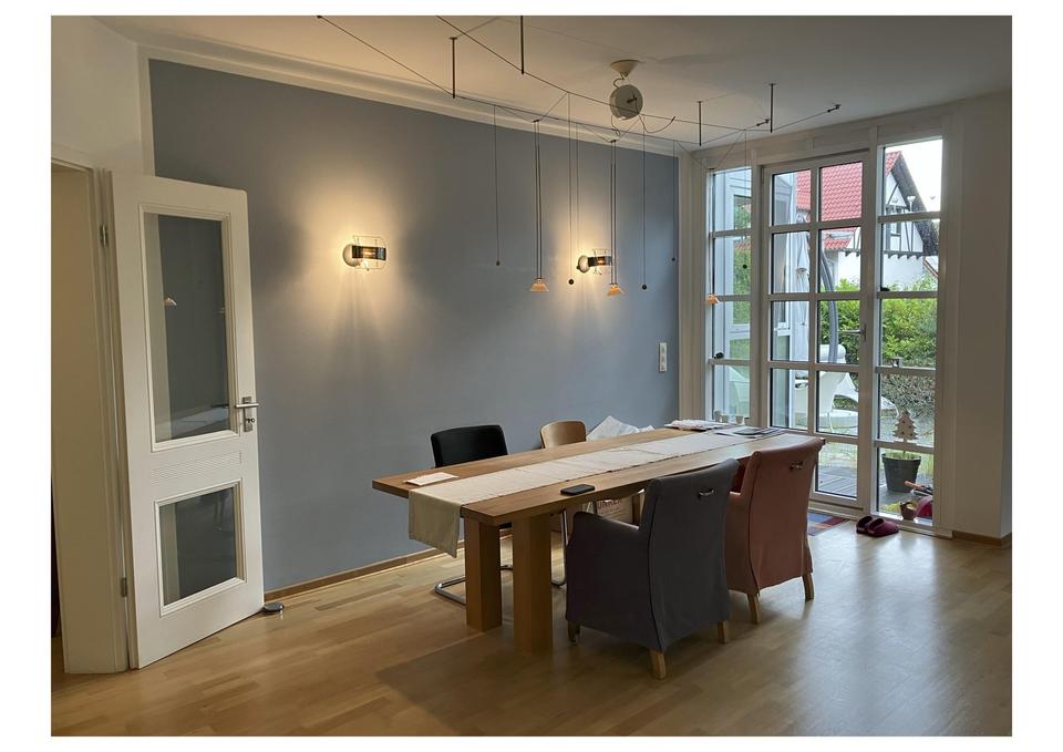 Auf großzügigen ca. 150 m² Wohnfläche, verteilt auf Erdgeschoss und Souterrain, bietet die Wohnung reichlich Platz für Familien, Paare oder anspruchsvolle Individualisten. Herzstück der Wohnung ist der helle und offen gestaltete Wohn- und Essbereich mit moderner Einbauküche. Von dem Wohnbereich gelangt man zu der großen Terrasse und in den Garten. Eine Wendeltreppe führt ins Souterrain, das durch seine clevere Raumaufteilung überzeugt: Hier befinden sich ein Schlafzimmer, ein Arbeitszimmer sowie ein praktischer Abstellraum. Das Hauptbad ist mit einer Eckbadewanne, Fenster und hochwertigen Armaturen ausgestattet. Zusätzlich steht ein modernes Gäste-Duschbad zur Verfügung. Ausstattungsmerkmale wie edle Parkettböden, Fußbodenheizung und hochwertige Materialien unterstreichen den exklusiven Anspruch dieser Immobilie. Zur Wohnung gehören ein Tiefgaragenstellplatz, ein Kellerabteil sowie eine gemeinschaftliche Waschküche, die bequem vom Souterrain aus erreichbar ist.