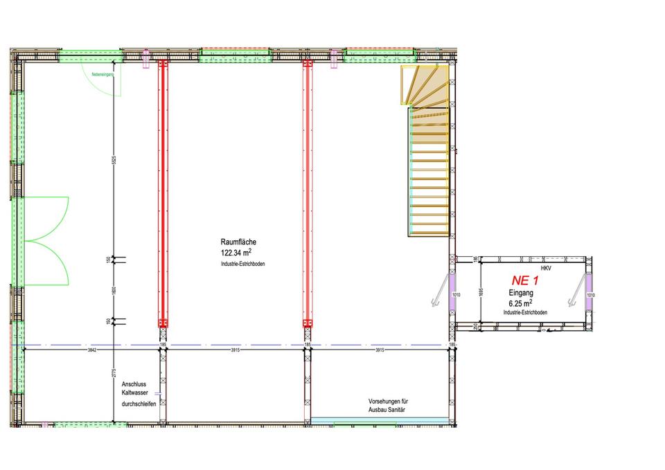 Erdgeschoss – 124 m² offene Fläche mit Sichtestrich & zwei Eingängen: