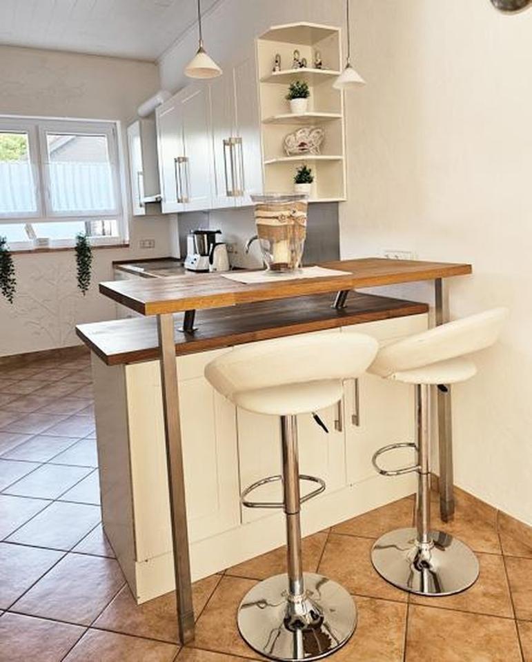 • Die maßgefertigte Einbauküche fügt sich harmonisch in den Wohnraum ein und überzeugt mit zeitloser Eleganz und hoher Funktionalität. Ausgestattet mit modernen Elektrogeräten, cleveren Stauraumlösungen und hochwertigen Materialien, bietet sie alles, was das Herz passionierter Hobbyköche und Alltagshelden begehrt. Ob entspanntes Frühstück, schnelles Abendessen oder gesellige Kochabende – diese Küche ist der ideale Ort für kulinarische Genussmomente.