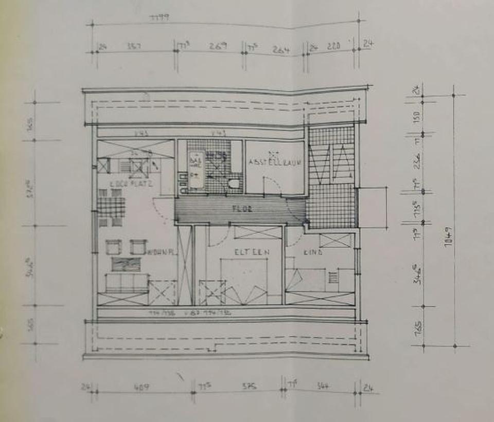 4 1/2-Zimmer-Wohnung, aufgeteilt in ein großes Wohn-/ Esszimmer mit Zugang zum Balkon, eine abgeschlossene Küche, Flur, Elternschlafzimmer, Kinderzimmer 1, Kinderzimmer 2, Tageslichtbad, Gäste-WC, großer, weitestgehend überdachter Balkon. Wohnfläche ca. 96 m².