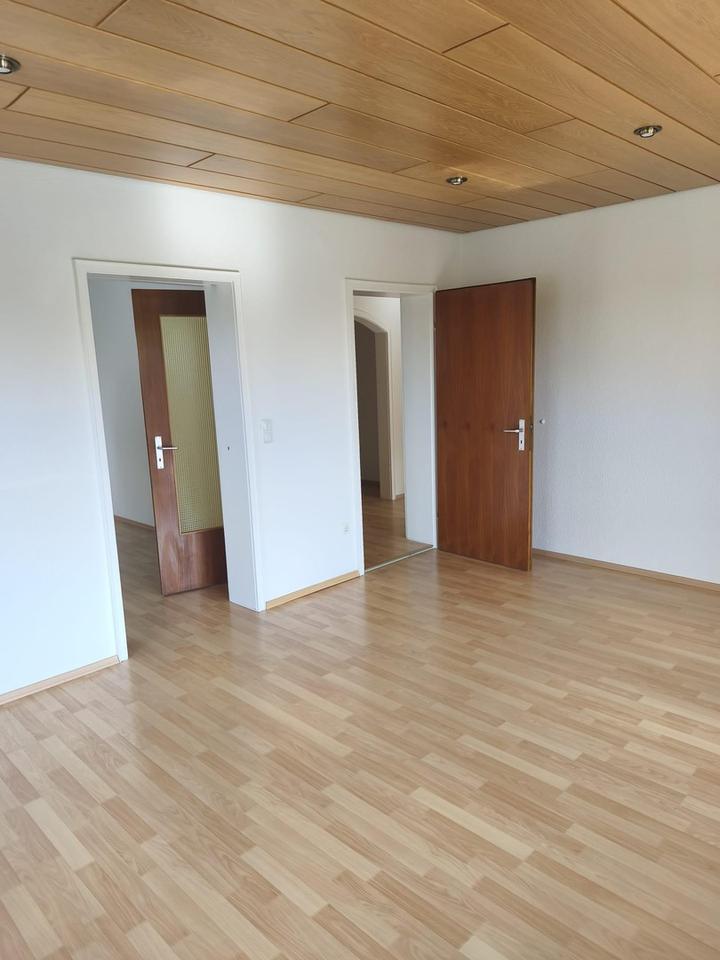4 1/2-Zimmer-Wohnung, aufgeteilt in ein großes Wohn-/ Esszimmer mit Zugang zum Balkon, eine abgeschlossene Küche, Flur, Elternschlafzimmer, Kinderzimmer 1, Kinderzimmer 2, Tageslichtbad, Gäste-WC, großer modernisierter Balkon. Wohnfläche ca. 96 m².