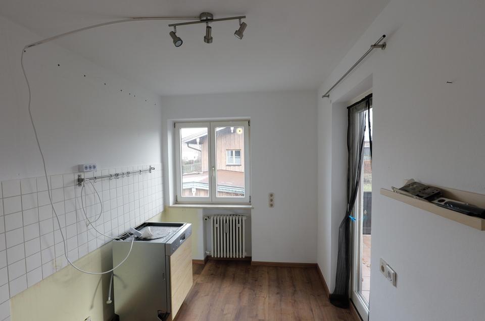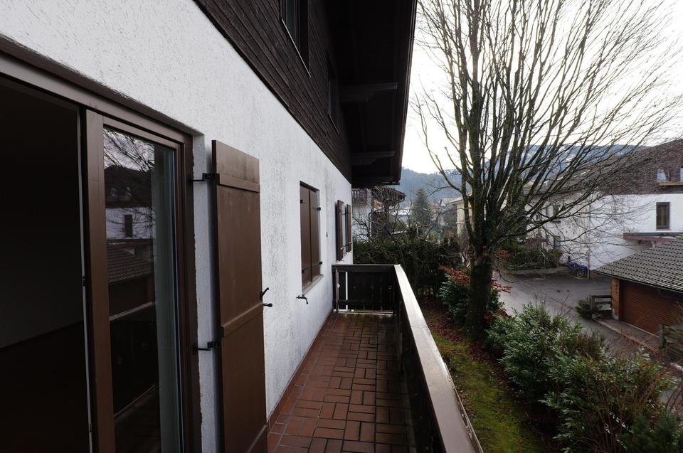 Im 1. OG befinden sich 2 Wohnungen. Die größere Wohneinheit mit 3 Zimmern und 89 qm Wohnfläche bietet zusätzlich einen 24 qm großen überdachten Balkon mit Südausrichtung und Bergblick. In dem großen Wohnzimmer befindet sich der schöne Kaminofen. Die kleine Wohneinheit hat 28 qm Wohnfläche und besteht aus einem großen Wohnraum, Badezimmer und Küche im Flur. Auch dieses Apartment verfügt über einen über 8 qm großen überdachten Balkon in Westausrichtung und schönem Blick zum Wendelstein.