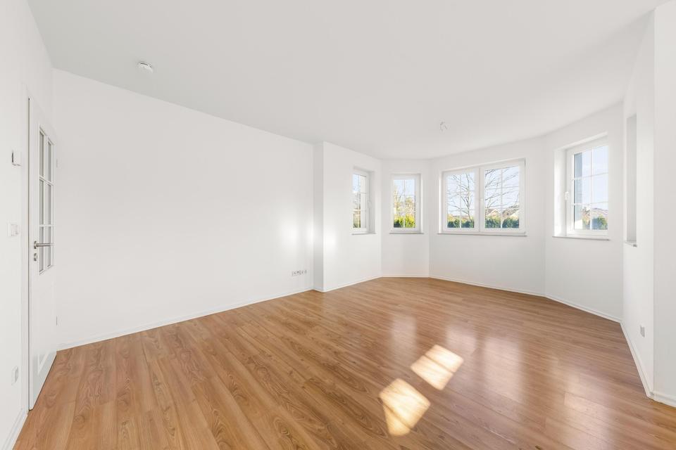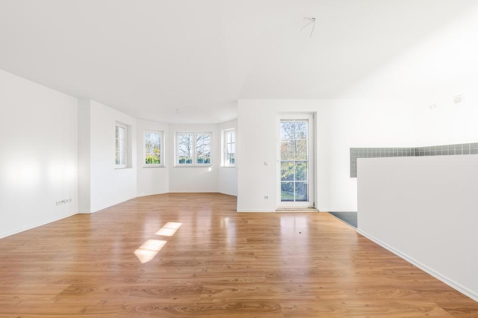 •Offene Einbauküche mit großzügigem Wohn-/Essbereich und Erker